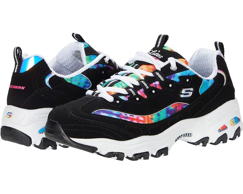 The SKECHERS® D’Lites – Summer Fiesta sneaker offers a feminine design and lasting comfort with an athletic-inspired silhouette, colorful synthetic panels, and comfortable padding at the tongue and collar.SKU: #9475863Smooth leather upper material.Lace-up closure offers a secure fit. Round toe with reinforcement at the bumper. Pull-tabs at the tongue and heel offer easy entry.Signature logo accents at the tongue, side, and heel.Breathable fabric lining.Air Cooled Memory Foam™ cushioned insole provides all-day comfort.Lightweight midsole absorbs impacting shock.Flexible rubber outsole offers traction. Imported. Product measurements were taken using size 9, width B – Medium. Please note that measurements may vary by size.Measurements: