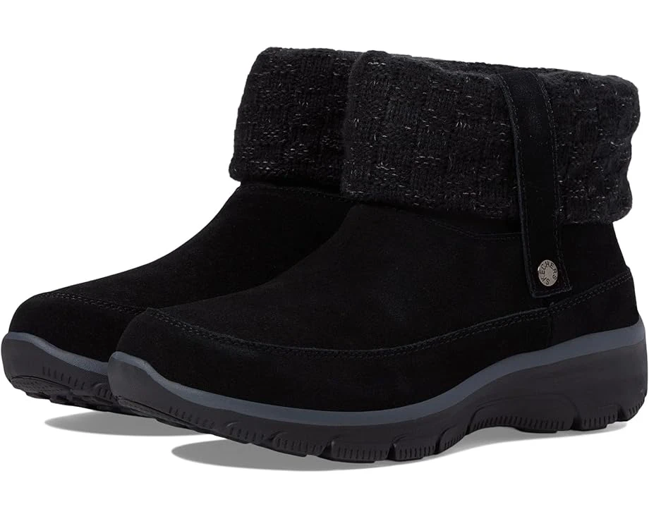 Ease up and stay cozy wearing the pair of SKECHERS® Easy Going – Upgraded Heights Boots. SKU: #9740112Water-repellent suede and sweater knit upper.SKECHERS® Air-Cooled Memory Foam® cushioned comfort insole.Scotchgard® treatment resists water and stains.Relaxed fit® for roomy comfort at toe and forefoot.Slip-on style.Lightweight shock-absorbing midsole.SKECHERS® logo on the side.Pull tab on the side to secure the foldable collar.Stitch detailing on the upper.Moc toe design.Flexible traction outsole.Imported.Weight of footwear is based on a single item, not a pair.