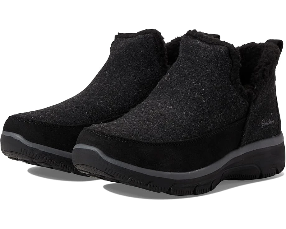 Keep your feet comfortbale and easy throughout the day wearing SKECHERS® Easy Going – Winter Kiss footwear.SKU: #9740115Wool and microfiber upper.Fabric lining.Skechers® air-cooled memory foam insole.Slip-on type.Round toe.Easy going construction.Faux fur trim lining on collars.Heel pull-tab.Ankle height.3M SCOTCHGARD™ treated upper.Lightweight shock-absorbing midsole.Brand logo on shaft.Rubber outsole with branding.Imported.Measurements: