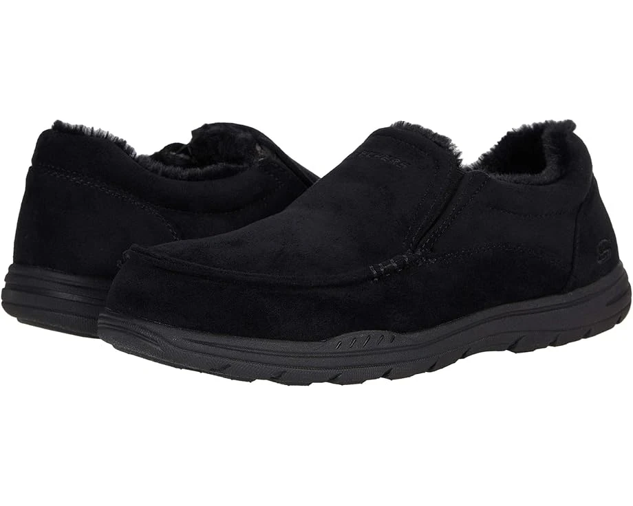 In the SKECHERS® Expected X – Larmen stay comfortable and in style during cooler weather.SKU: #9513747Relaxed Fit® design provides a roomy, comfortable fit.Memory Foam insole provides incredible all-day comfort and support.Slip on style.Round toe.Padded collar.Shock absorbing midsole.Midsole with textured side detail for added flexible comfort.Dual side elastic panels for easy slip on fit.Branding on heel counter.Upper, lining, and insole made of textile material.Synthetic outsole.Imported.Product measurements were taken using size 9, width D – Medium. Please note that measurements may vary by size.Weight of footwear is based on a single item, not a pair.Measurements:
