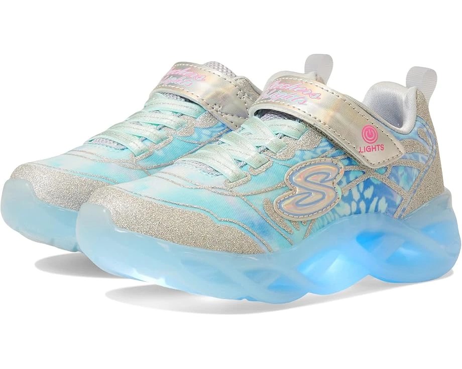 Light up your little one’s world by adding the SKECHERS® KIDS Sport Lighted-Twisty Brights 303710L sneakers to their closet. SKU: #9799237Synthetic upper decorated with multicolor 3D print and glitter. Textile lining and insole. Elasticized lace panel with hook-and-loop strap closure. Pull tab on the back. Logo detailing on the side. Round toe design. Translucent light-up “ice” midsole.Shock-absorbing translucent midsole.Flexible traction outsole.Imported. Product measurements were taken using size 10.5 Little Kid, width M. Please note that measurements may vary by size.Measurements:
