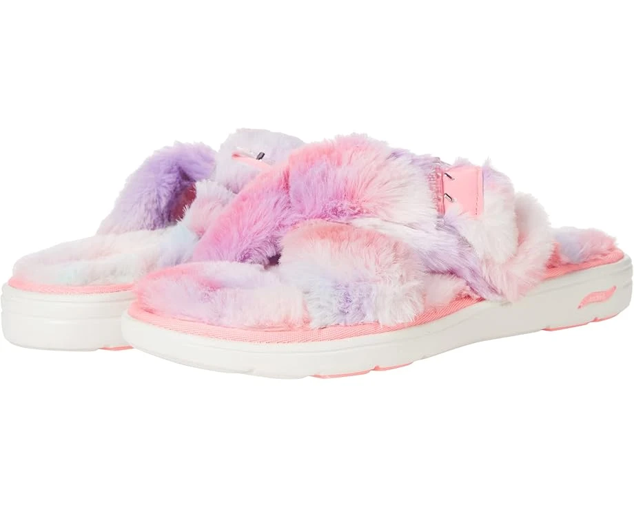 Stay stylish in comfort with the tie-dye inspired designed SKECHERS® Performance Arch Fit Lounge – Excite slippers.SKU: #9589634Upper, lining, and insole made of textile material.Buckle and slip-on closure.Open round-toe silhouette.Outsole made of synthetic and textile material.Imported.Product measurements were taken using size 9, width B – Medium. Please note that measurements may vary by size.Weight of footwear is based on a single item, not a pair.Measurements: