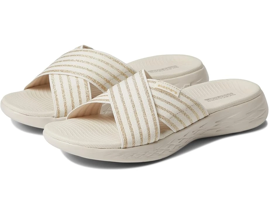 The SKECHERS® Performance On-The-Go 600 sandal boasts a woven fabric upper, river-style silhouette, open toe, colorful heathered finish, and a machine washable design that will lend comfort and eye-catching style to any warm-weather look.SKU: #9365842Strap over the instep with adjustable hook-and-loop closure.Features high-rebound cushioning with responsive feedback.Signature logo detail at the instep strap.Breathable fabric lining.Textured Goga Mat® cushioned insole offers all-day comfort.5GEN® midsole features an injection-molded compound with memory retention helps absorb impact.Multi-directional traction sole.Imported.Product measurements were taken using size 8, width B – Medium. Please note that measurements may vary by size.Measurements: