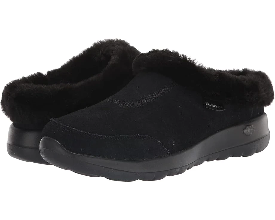Walk in warmth with the SKECHERS® Performance On-The-Go Joy – Cozy slip-on shoe.SKU: #9563081Textile and synthetic upper.Faux fur lining.Branding on the side. Round slightly raised toe.Slip-on design with open back. Low backed slip-on casual clogs.Cushioned midsole.Rubber outsole.Imported.Weight of footwear is based on a single item, not a pair.