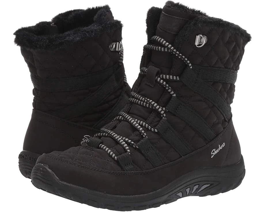 The SKECHERS® Reggae Fest Moro Rock boot embraces the elements with a sleek silhouette, quilted finish, and optimal comfort features.SKU: #9170857Textured nylon fabric and microfiber upper materials feature a parka-style design. Lace-up construction for a secure fit.Round toe with rubber reinforcement at the bumper.Relaxed Fit® design provides a roomier fit. Soft faux-fur shaft lining and collar trim.Ripstop nylon with hexagon quilt stitching at the front and sides.Signature logo accents at the tongue, side, and heel bumper.Breathable fabric socklining. Air Cooled Memory Foam™ cushioned insole for all-day wear.Reggae design provides supportive comfort midsole.Flexible rubber traction outsole.Imported.Product measurements were taken using size 8, width B – Medium. Please note that measurements may vary by size.Measurements: