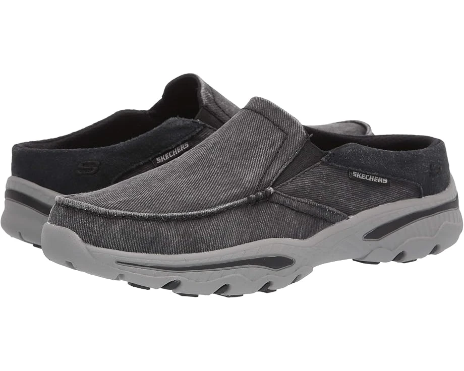 The SKECHERS® Relaxed Fit Creston – Backlot mule will refine your casual look with a low-backed design, vintage-inspired canvas fabric upper, and easy slip-on construction.SKU: #9371530Relaxed Fit® design offers a roomier fit.Stitched raised seam accented moc toe front.Dual side goring panels provide easy wear.Padded collar with durable construction.Heel overlay panel.Signature logo details at the side heel.Breathable fabric lining.Air Cooled Memory Foam™ topped cushioned comfort insole.Shock absorbing midsole with contrast colored stripe.Midsole design with textured side panels for added stability.Flexible rubber traction outsole.Imported.Product measurements were taken using size 9, width D – Medium. Please note that measurements may vary by size.Measurements: