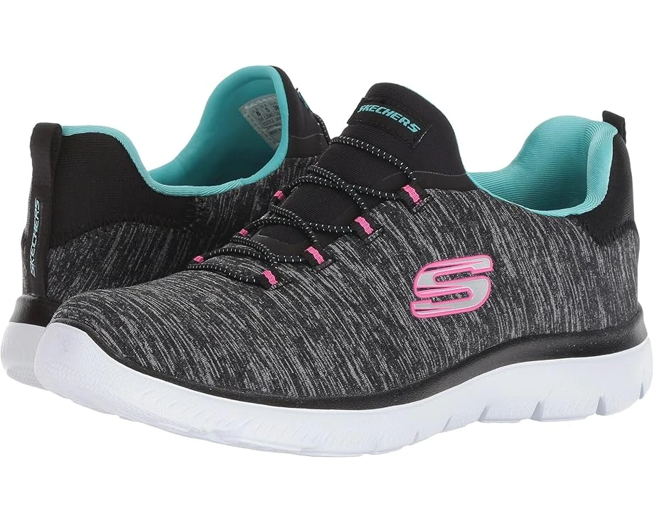 The SKECHERS® Summit – Quick Getaway sneaker will complete your sporty-chic look with a jersey knit mesh upper, a heathered finish, and optimal comfort features.SKU: #9140957Slip-on design with bungee lacing for a secure fit.Round toe with sturdy reinforcement. Rear pull-tab offers easy entry.Padded tongue and collar for added comfort.Signature logo detailing at side, tongue, and heel counter.Soft fabric lining.Memory Foam™ cushioned insole lends to long-lasting wear.Lightweight, shock-absorbing midsole. Flexible traction outsole.Imported.